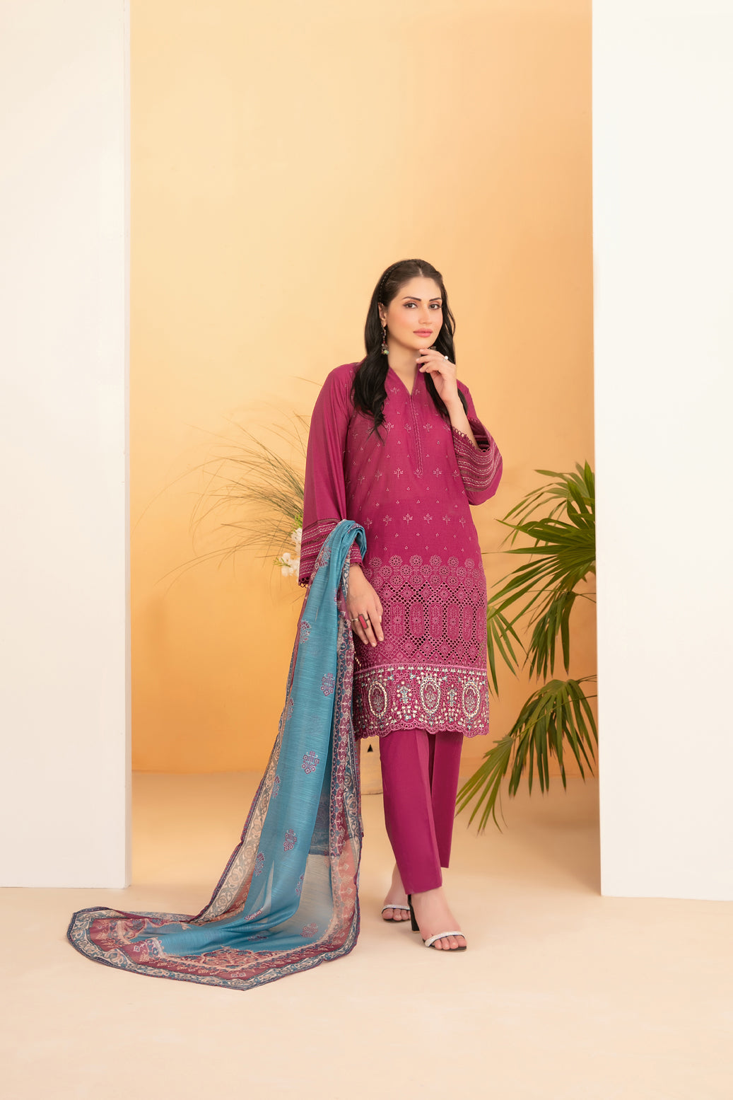 Tawakkal Firasha D-5357| 3-Piece Unstitched Embroidered Slub Viscose Suit for Women