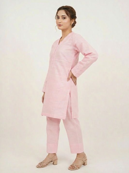 Soft Blush Khaddar Suit | 2 Piece Ready-to-Wear Khaddar Outfit for Women | DHAGAKAARI