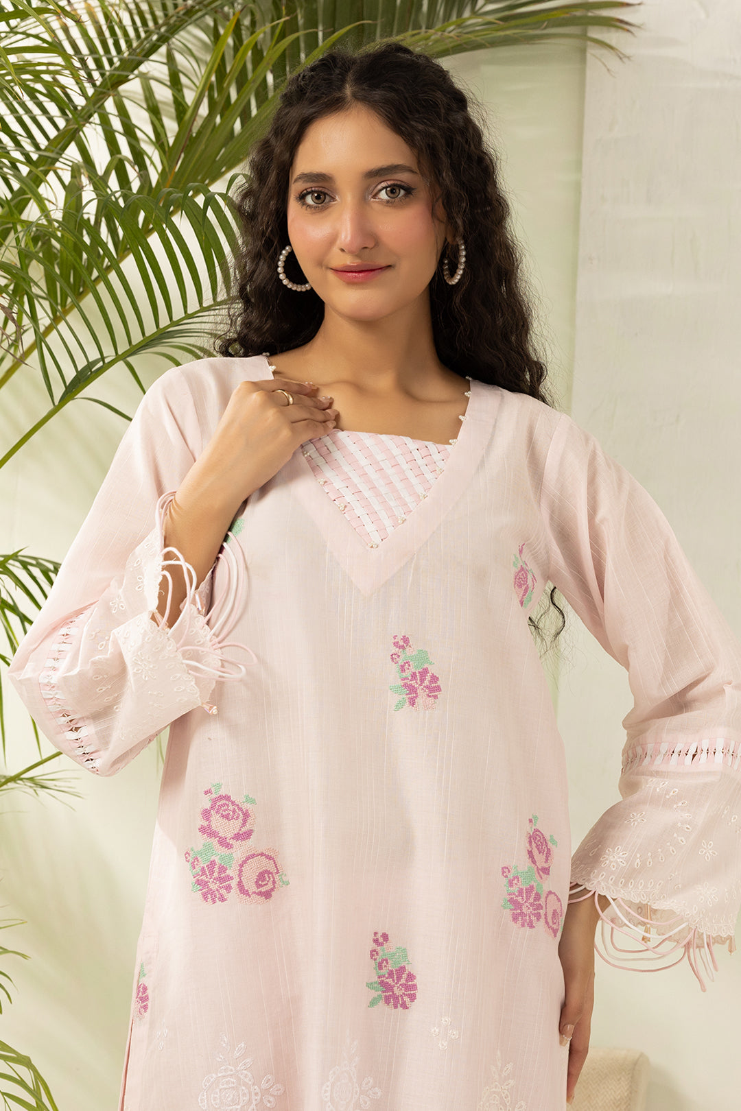 Buy 2 Piece Embroidered Lawn Shirt Shalwar in Baby Pink Color