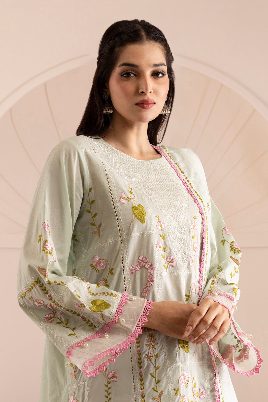 Buy 3 Piece Embroidered Lawn Shirt Shalwar Dupatta in Pista Green Color