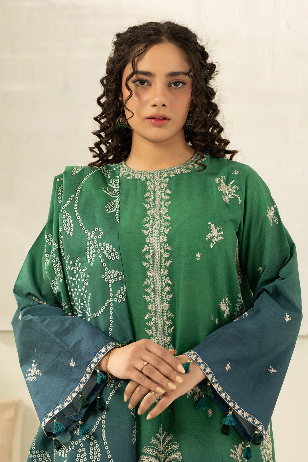 Buy 3 Piece Embroidered Lawn Shirt Shalwar Dupatta in Green Color