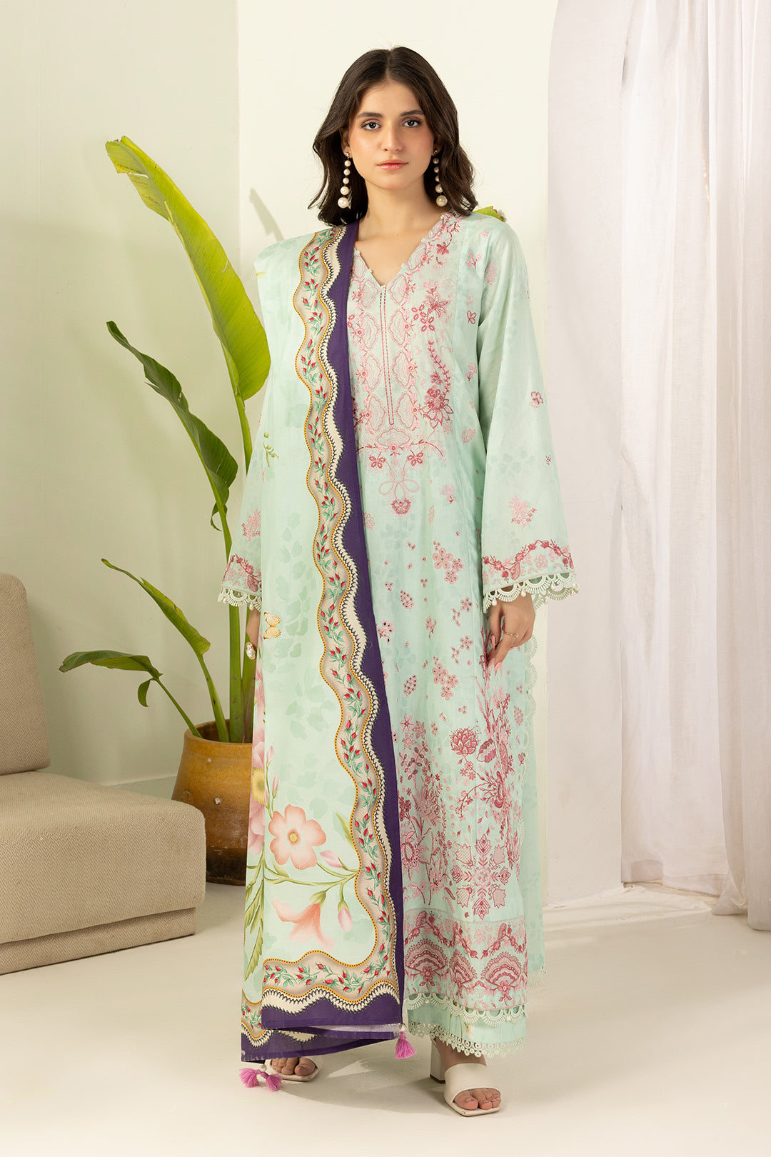 Buy 3 Piece Embroidered Lawn Shirt Shalwar Dupatta in Mint Green Color