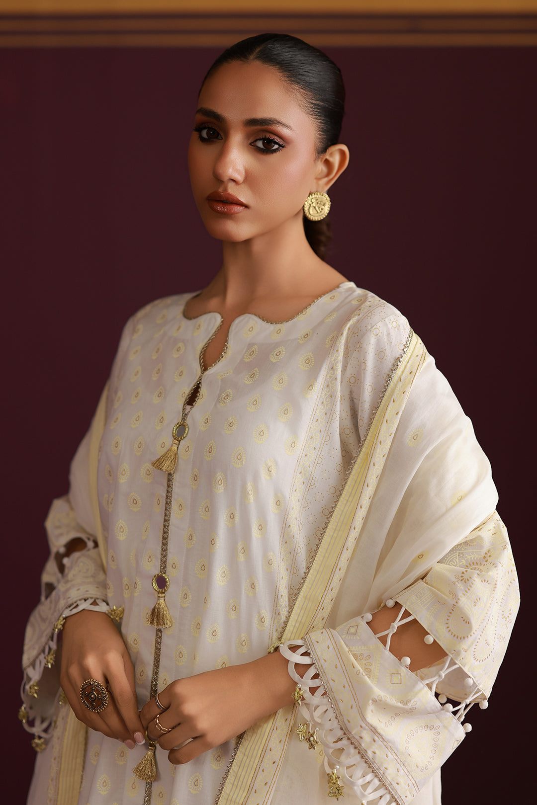 Buy 3 Piece Printed Lawn Shirt Shalwar Dupatta in Off White Color