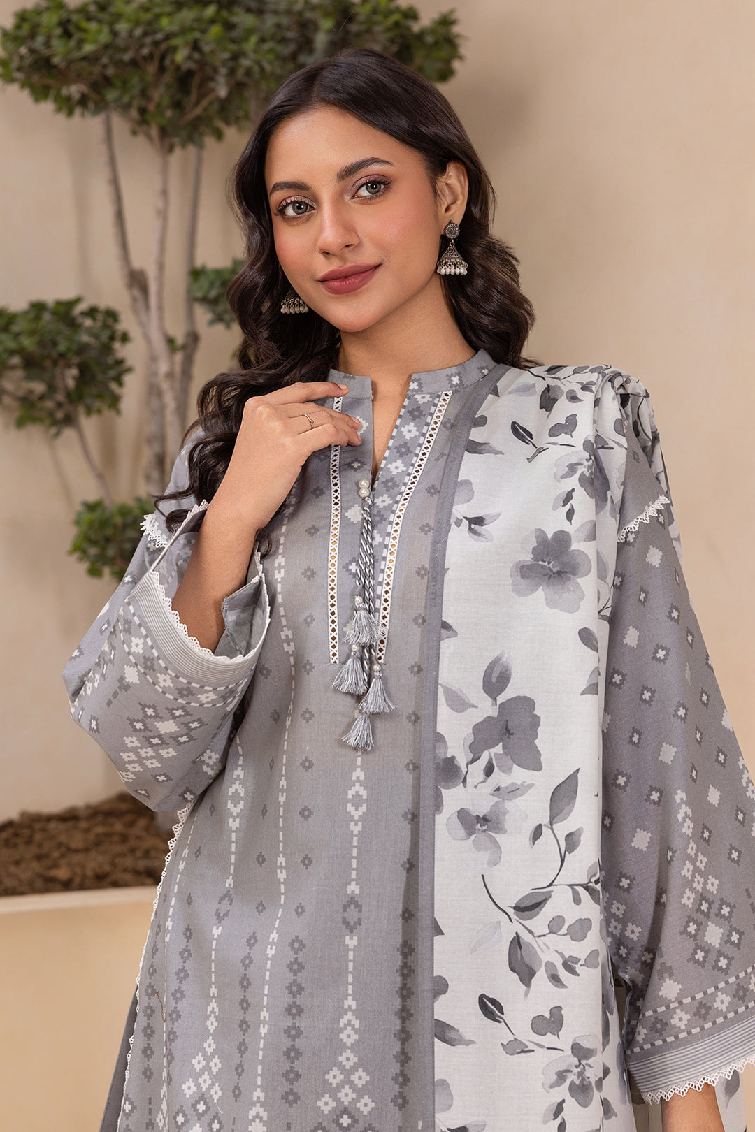 Buy 3 Piece Printed Lawn Shirt Shalwar Dupatta in Grey Color