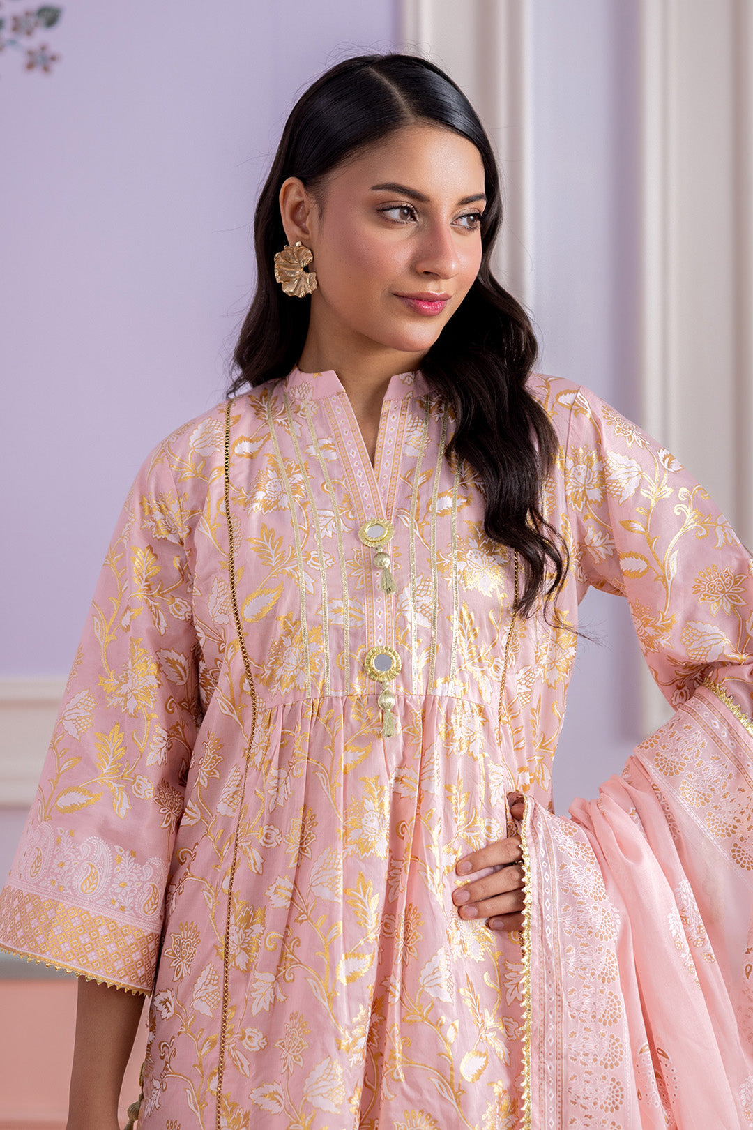 GLITTER PASTE PRINTED LAWN SHIRT - GLITTER PASTE PRINTED LAWN DUPATTA - DYED CAMBRIC TROUSER