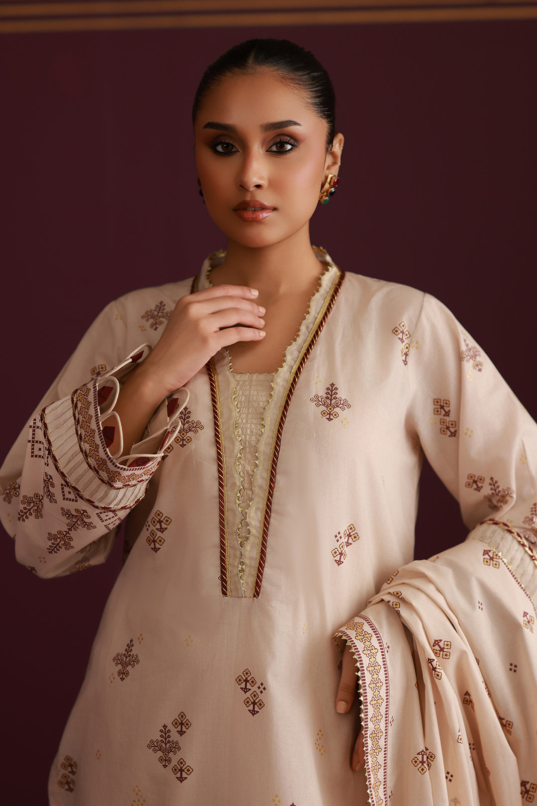 DYED EMBROIDERED COTTON SHIRT - DIGITAL PRINTED MONAR DUPATTA - DYED CAMBRIC TROUSER