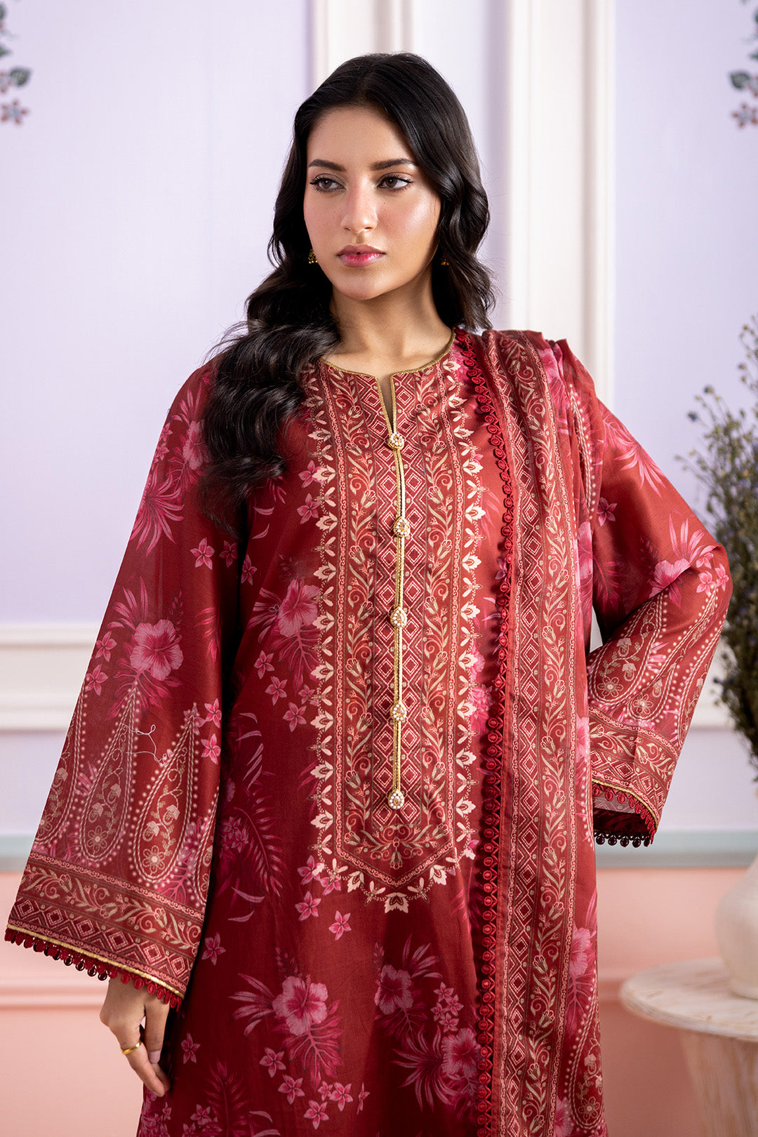 Buy 3 Piece Printed Lawn Shirt Shalwar Dupatta in Maroon Color