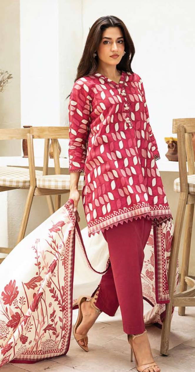 Elevate your summer wardrobe with the MARIA B Elaheh Collection 3 Pc Unstitched Printed Lawn Suit (MB‑ELHV3‑03), a beautifully crafted seasonal outfit that effortlessly blends comfort and style. This premium three‑piece set includes a printed lawn shirt (3 meters) featuring delicate seasonal motifs, a dyed cambric trouser (2.5 meters) for lasting comfort, and a printed voile dupatta (2.5 meters) to complete your look with grace and flair, giving you endless styling possibilities. The breathable lawn fabric makes this suit ideal for warm weather and daytime occasions, while the unstitched design lets you tailor it to your perfect fit. Whether you’re dressing up for a casual outing or a festive occasion, this suit from the acclaimed Elaheh Collection by MARIA B adds elegance to every moment.