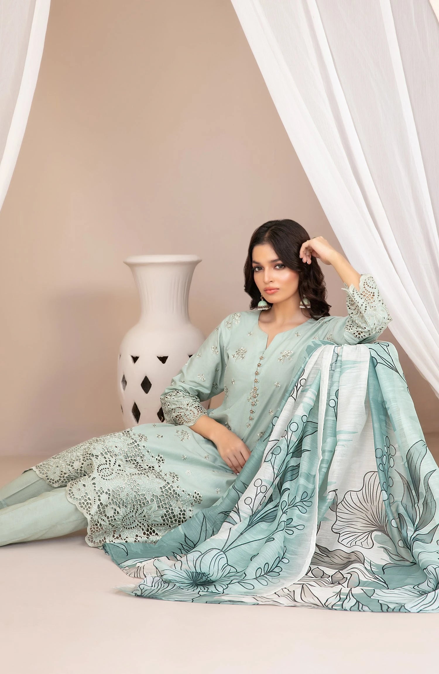 Nazifa by Tawakkal Fabrics Embroidered Schiffli Lawn Stitched 3 Piece Suit - D-1043 - TF26NZ - Sea Green - Summer Collection