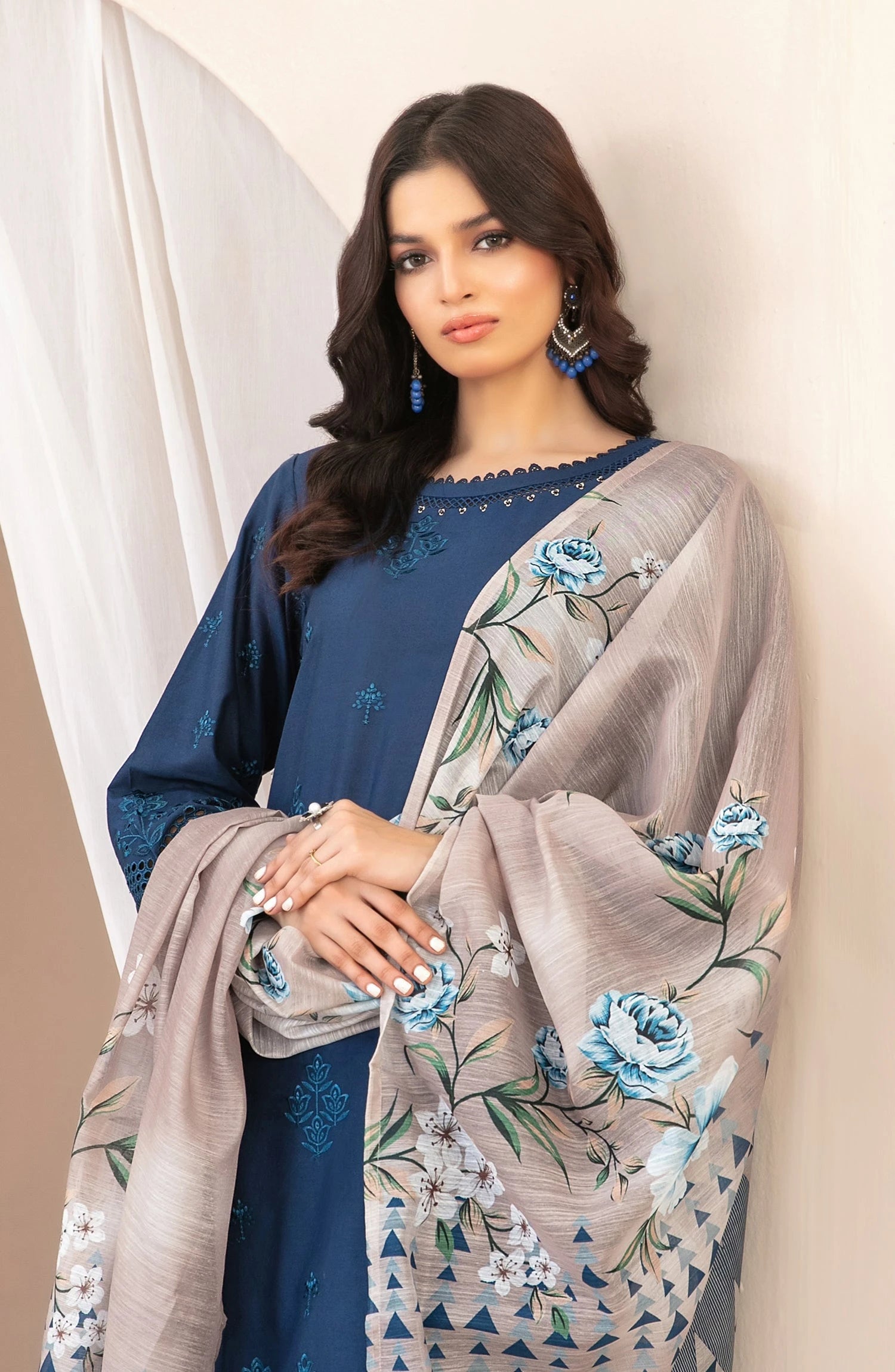 Nazifa by Tawakkal Fabrics Embroidered Schiffli Lawn Stitched 3 Piece Suit - D-1044 - TF26NZ - Blue - Summer Collection