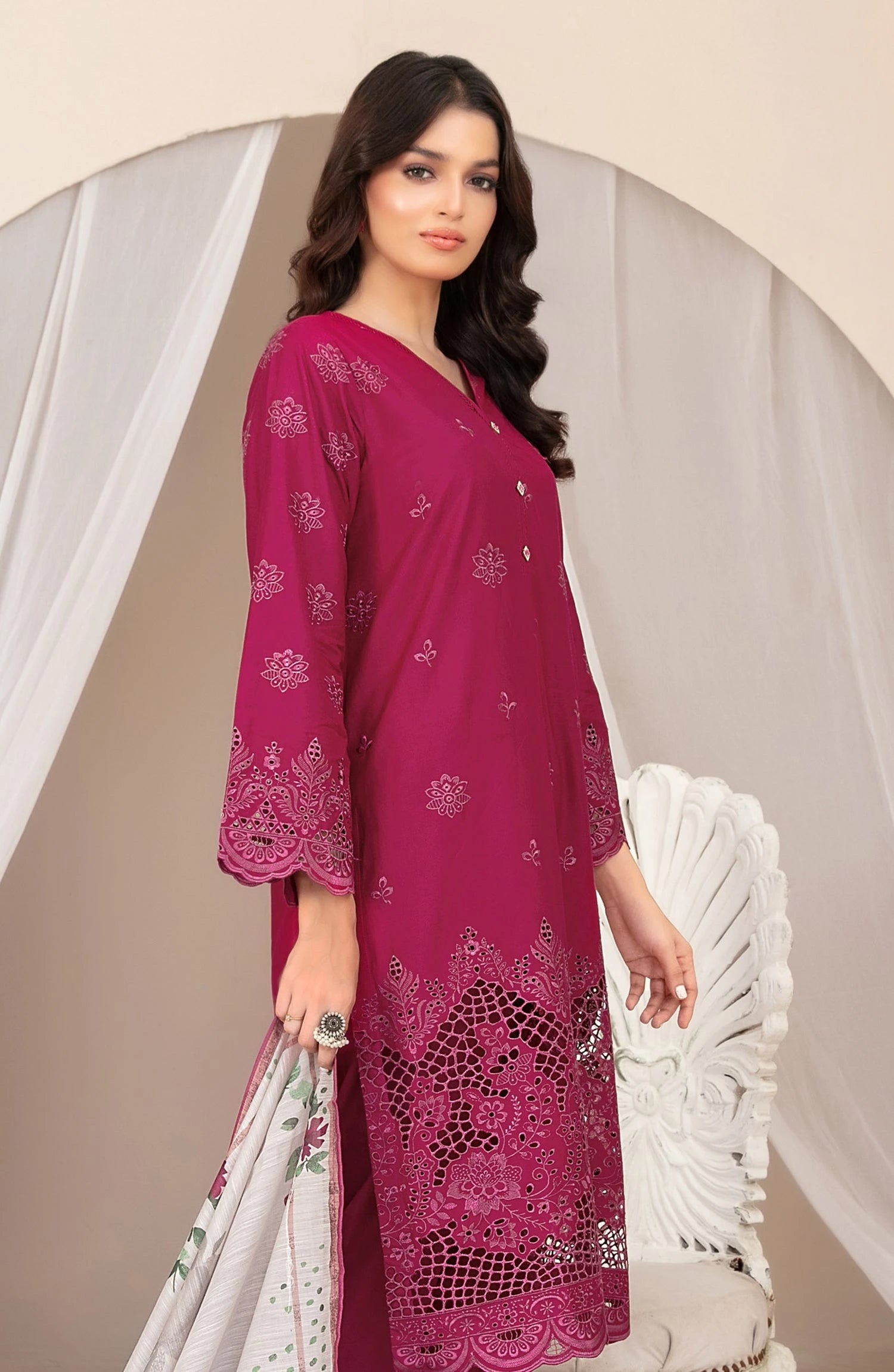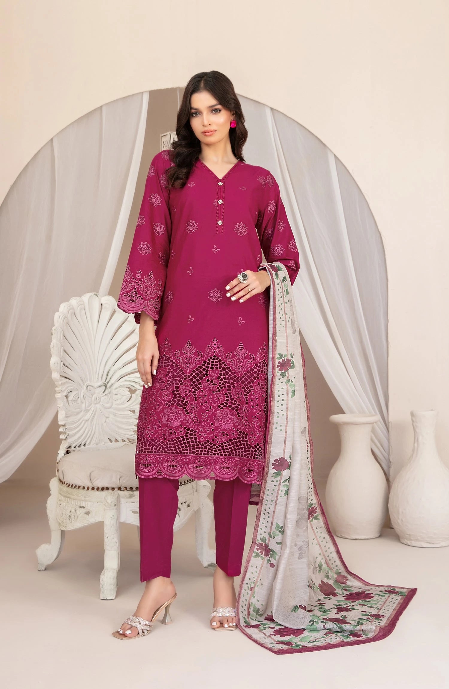 Nazifa by Tawakkal Fabrics Embroidered Schiffli Lawn Stitched 3 Piece Suit - D-1041 - TF26NZ - Pink - Summer Collection