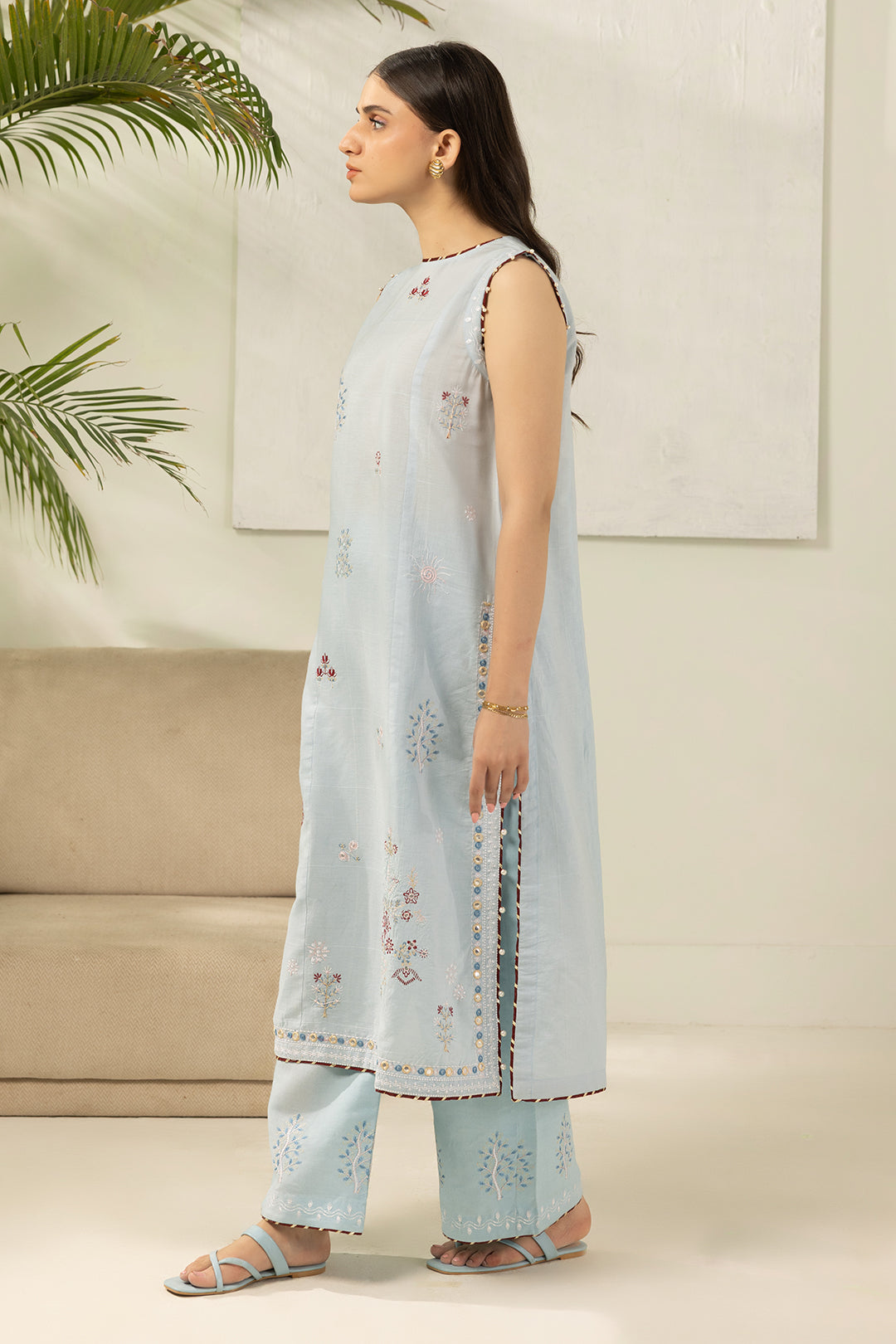 Buy 2 Piece Embroidered Lawn Shirt Shalwar in Sky Blue Color